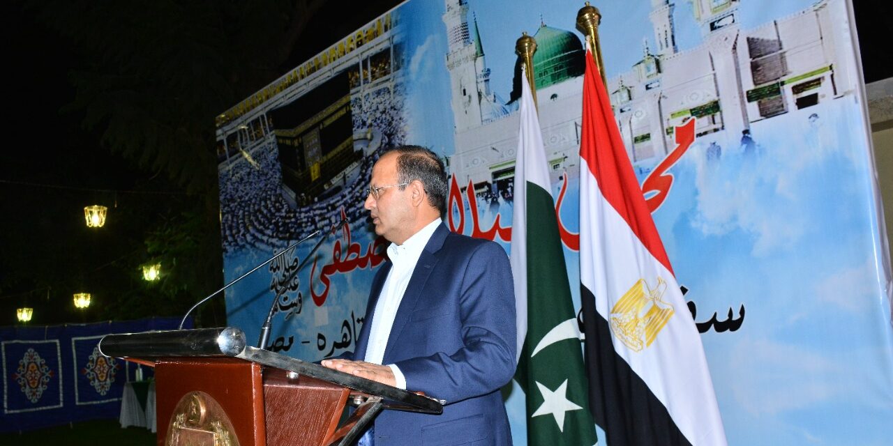 On the occasion, Holy Quran, Naat-e-Rasool-e-Maqbool and Qasida Burda Sharif were recited by students of Al-Azhar University and Pakistan International School, Cairo.